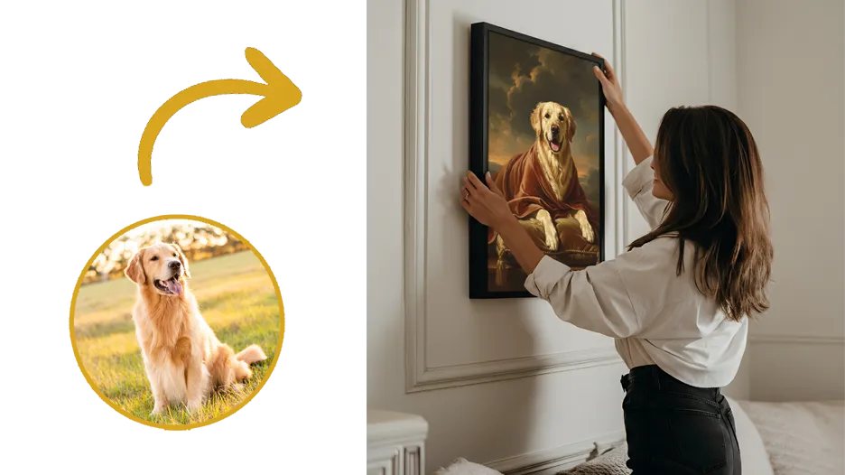 Transform your pet's photograph into a majestic portrait worthy of palace walls. Every whisker, every noble gaze—immortalized in timeless artistry.